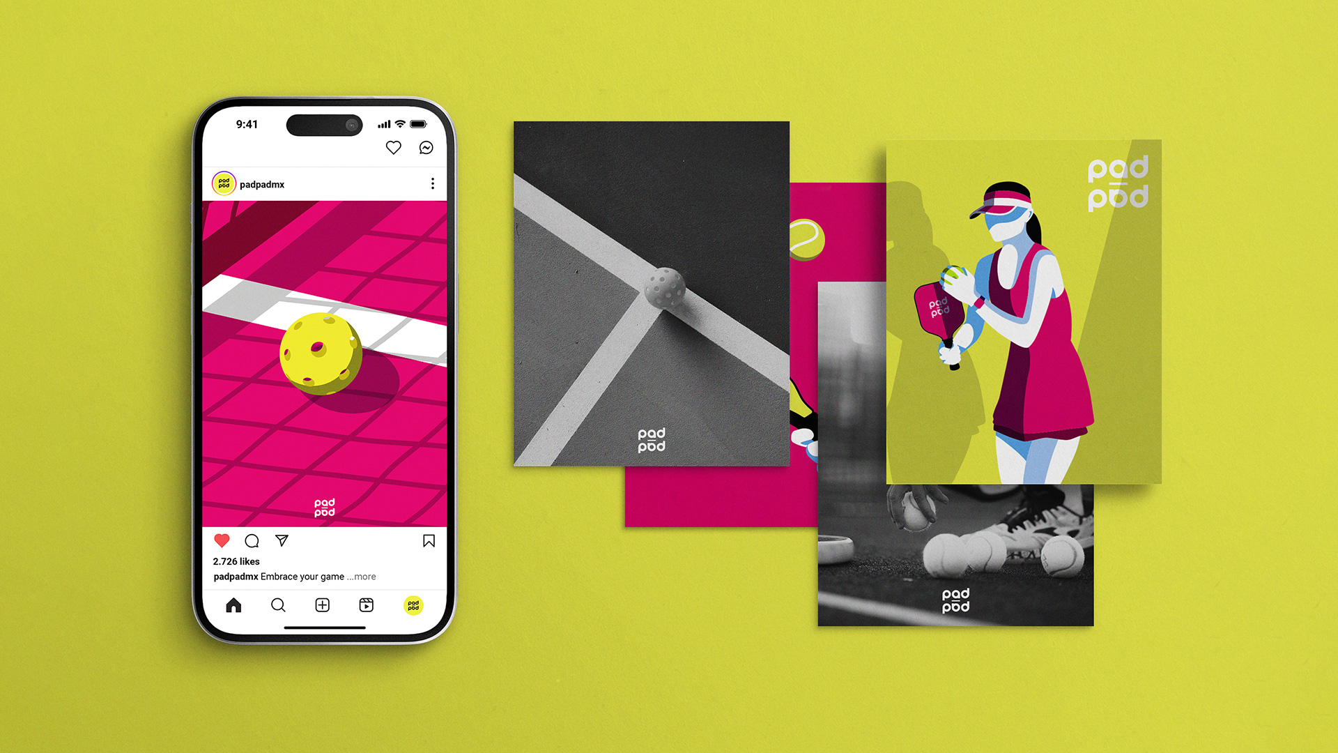 En concordancia con la propuesta de Pad Pad, el manejo de la identidad visual de la marca atendió a cada uno de los deportes ofertados. Elementos visuales del pádel, el pickleball y la petanca fueron incorporados al diseño y a la estrategia de comunicación para fomentar la difusión y profesionalización de estos deportes en la ciudad.